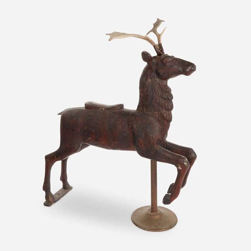 Carved and painted wood carousel deer Attributed to Gustav Bayol (1859-1931), France, late 19th century