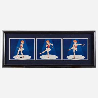 Three cells matted separately and presented together in one frame, one cell matted and framed on its own.
