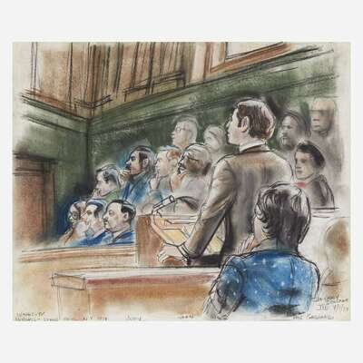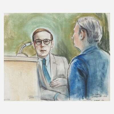 Ida Libby Dengrove and Marcia Danits (20th century) Three original courtroom drawings, dated, "1974" and "1975"