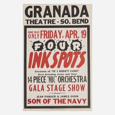 33 in. x 23 1/4 in. (Page Plant), 33 in. x 23 1/2 in. (Bob Dylan), 21 in. x 13 3/4 in. (Lou Reed), 22 in. x 14 in. (Four Ink Spots), 23 in. x 14 1/2 in. (Charlie Daniels), 35 in. x 22 1/2 in. (Killdoz