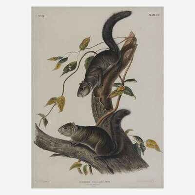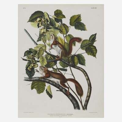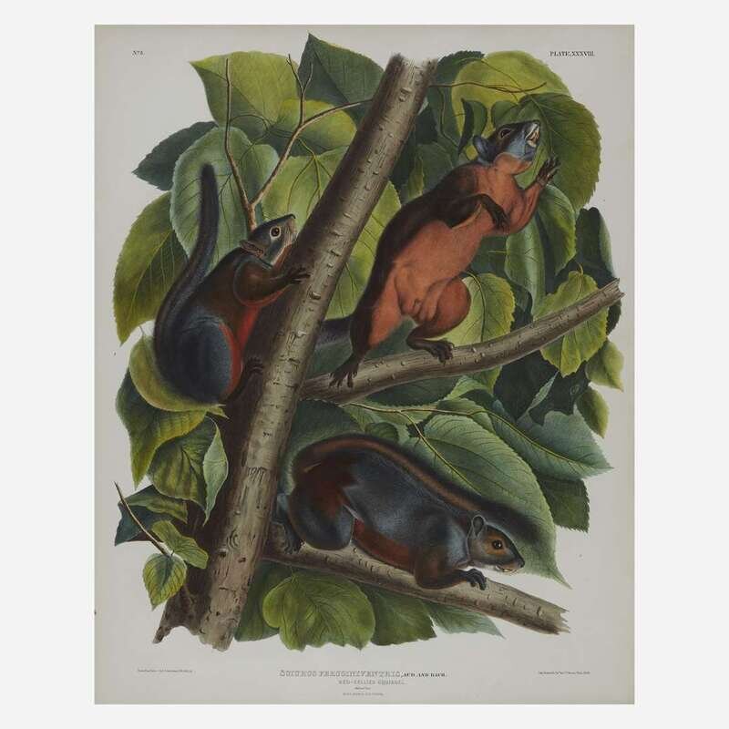 All hand-colored lithographs from Audubon's "The Viviparous Quadrupeds of North America" (1845-48) ,the first, Hudson's Bay Squirrel, Plate XIV, the second, Red-Bellied Squirrel, Plate XXXVIII and the third, Collies Squirrel, Plate CIV .