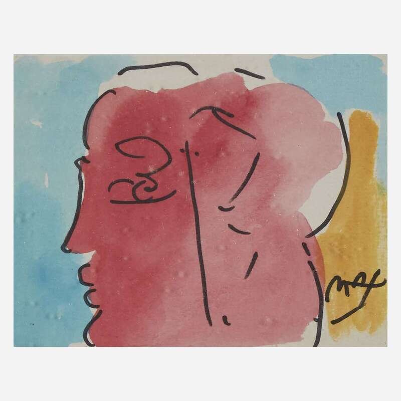Signed, "Max", l.r., watercolor and ink on paper, framed.