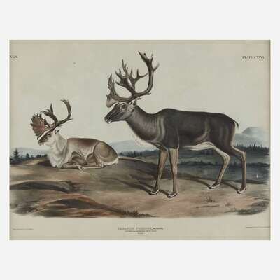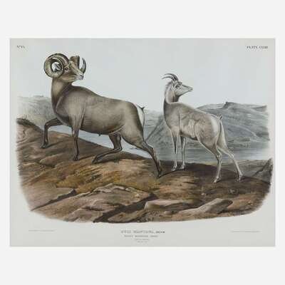 Hand-colored lithographs, Rocky Mountain Sheep, Plate LXXIII and Caribou or American Rein-Deer, Plate CXXVI from Audubon's "The Viviparous Quadrupeds of North America" (1845-48).