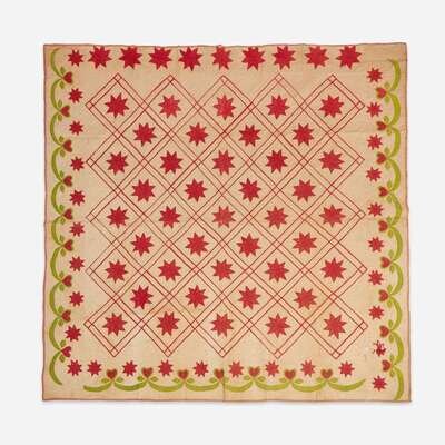 "Eight-pointed star" pattern pieced quilt late 19th century
