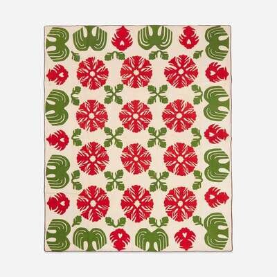 Fine red and green cotton applique quilt third quarter of the 19th century
