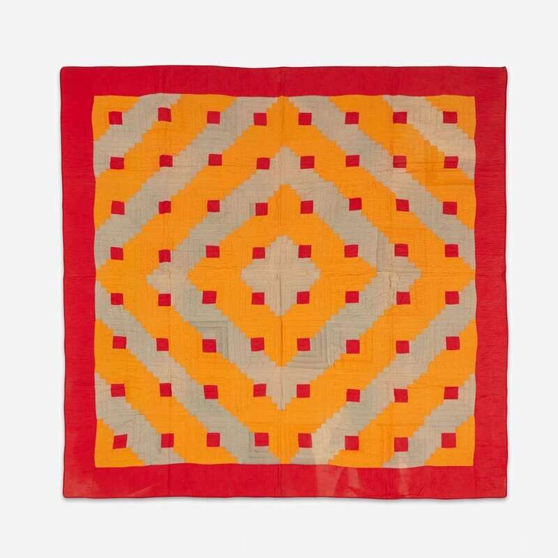 Amish "Log House" variation pieced cotton quilt early 20th century