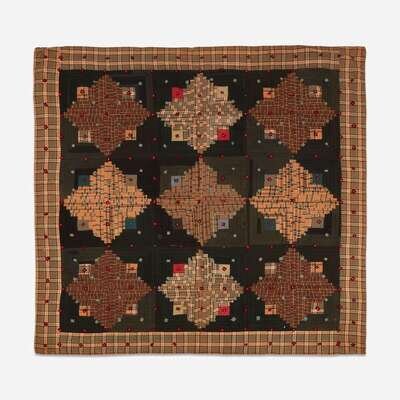 Wool and felt "Court House Steps" pattern tied bedcover