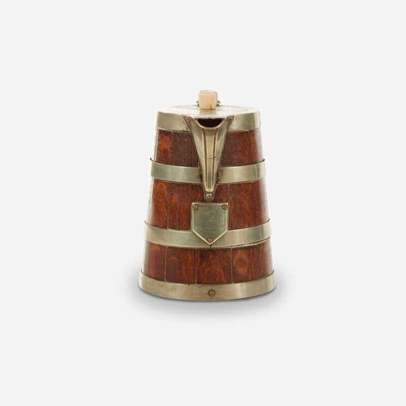 With plaque engraved "Dulwich Fox Terrier Coursing Club/ Feb. 17th 1883/ Presented by William Wilson/ Won by Charley", and engraved to lid and spout "1st Prize Heavy Weight Consolation Stakes/ 2 Years 19 lbs.", with ivory knob.