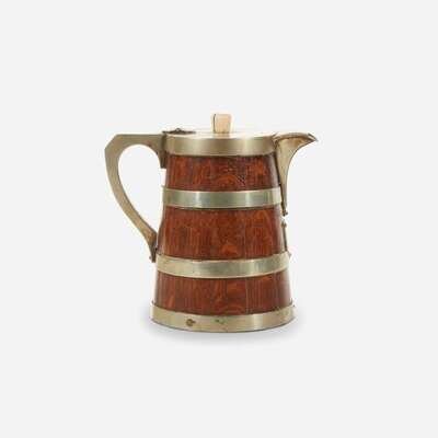 Silverplate-mounted oak Fox Terrier dog show trophy pitcher English, dated "1883"