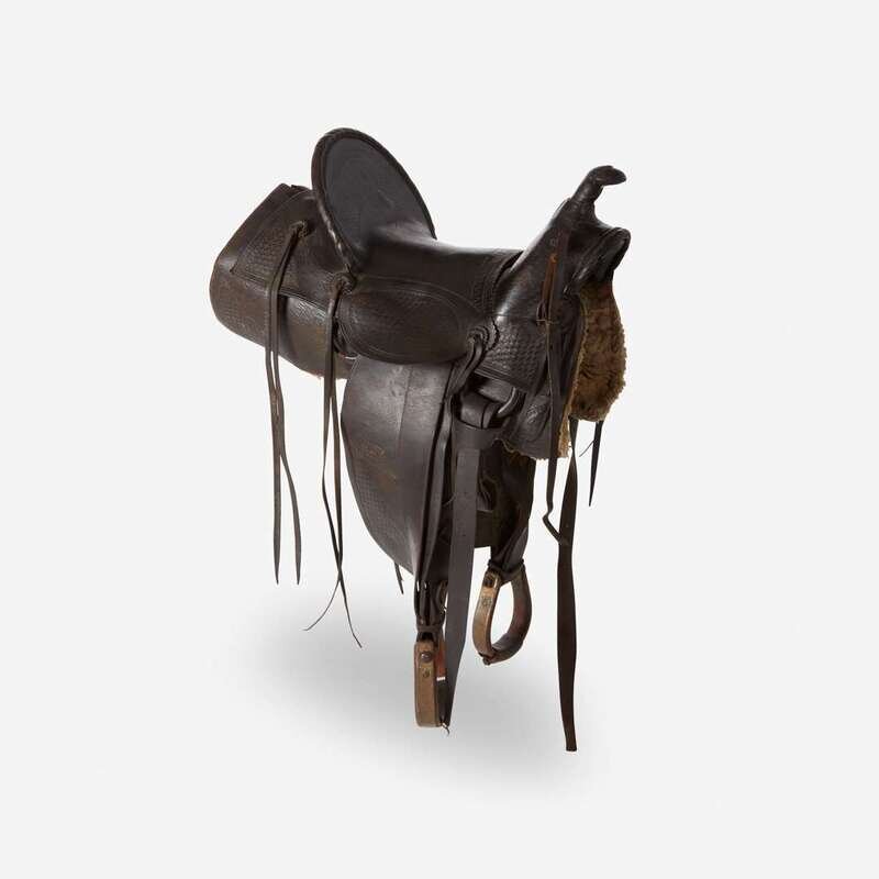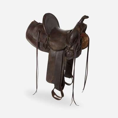 Two tooled and worked leather saddles R.T. Frazier, Pueblo, CO, and Miles City Saddlery, Miles City, MT, 20th century