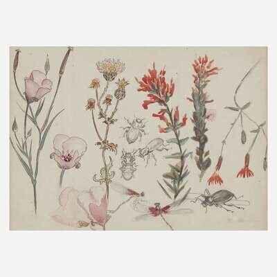 Gus Dirks (1879-1903) Sketch of Flowers and Insects