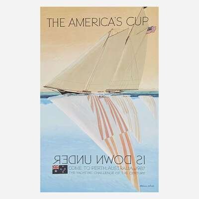After E. Melbourne Brindle (1904-1995), Lauren Jarrett (20th century), and other Three posters: "The America's Cup is down under come to Perth in 1987", "Celebrate our Land", and "Tanglewood"