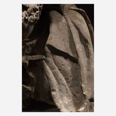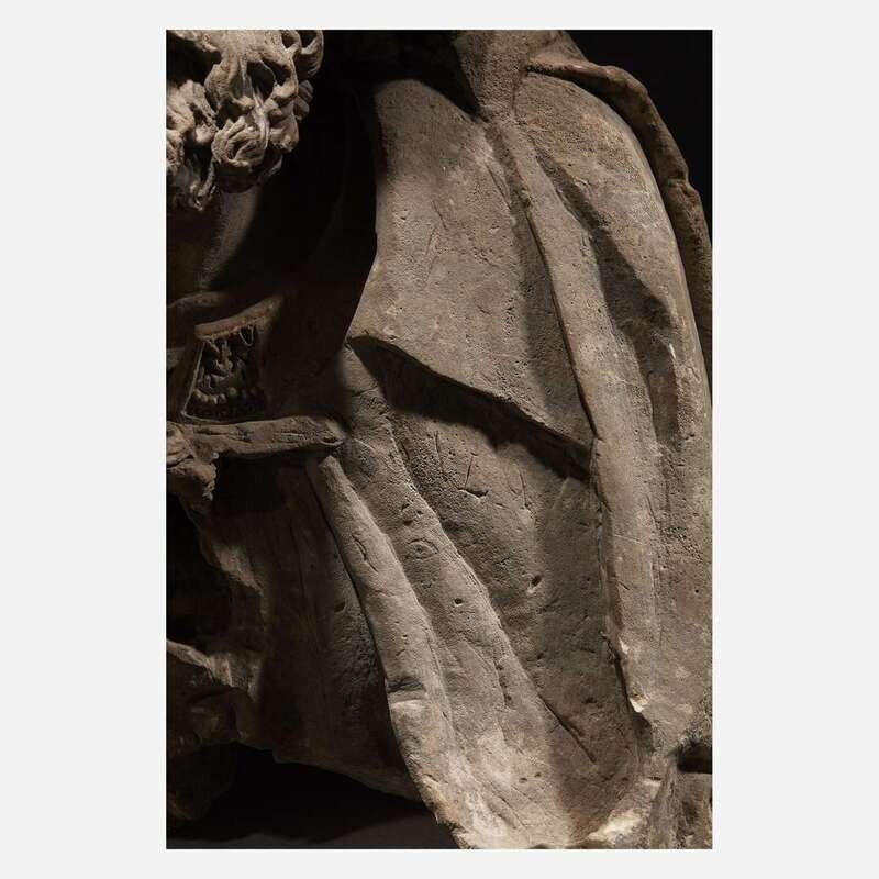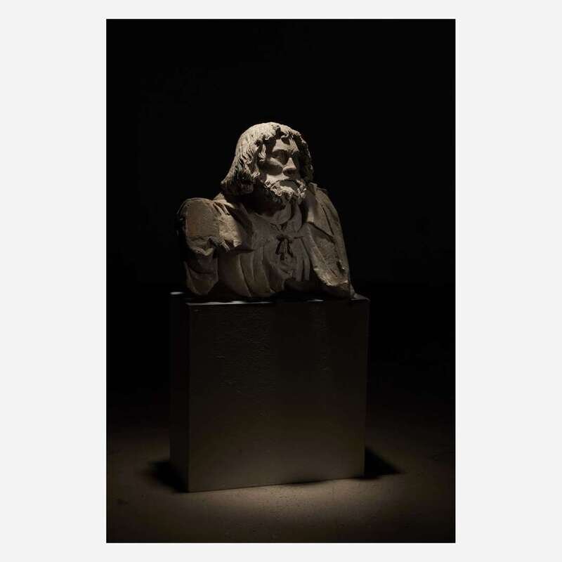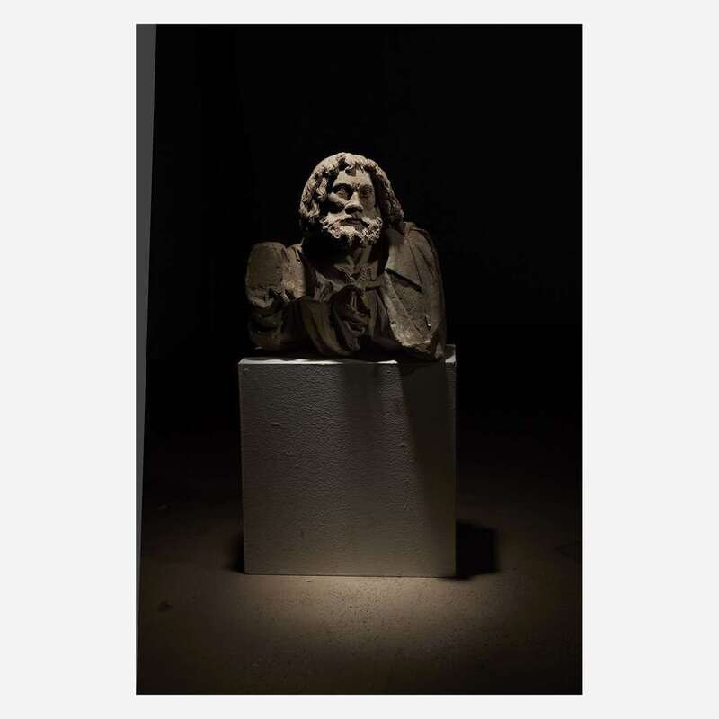 A Rhenish late Gothic carved limestone bust of a kneeling man, possibly Nicodemus or Joseph of Arimathea Western Rhine Valley, late 15th/early 16th century