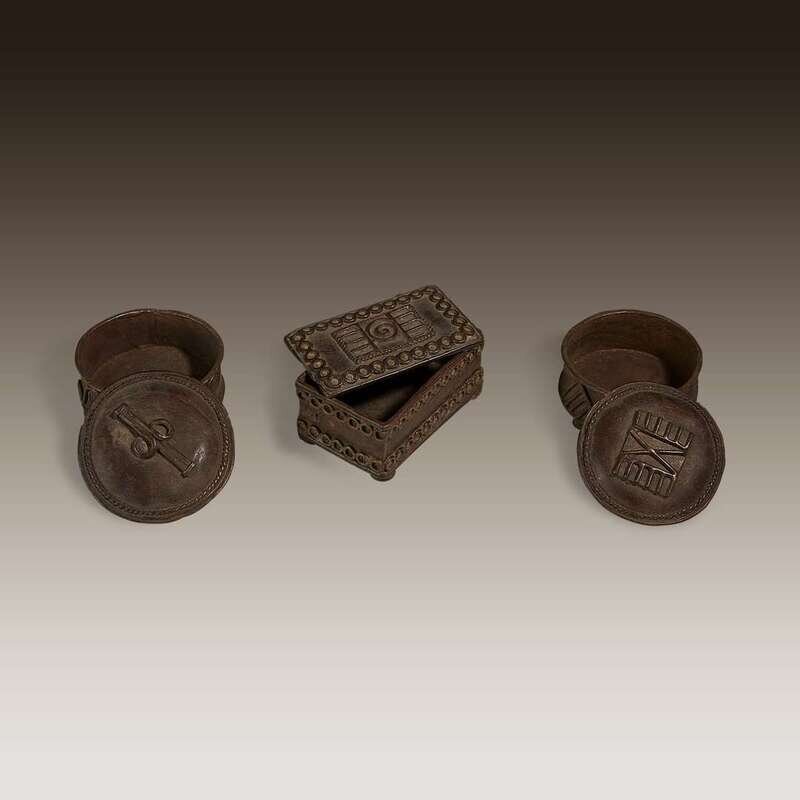 A collection of Akan gold dust boxes, Kuduo Ghana