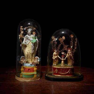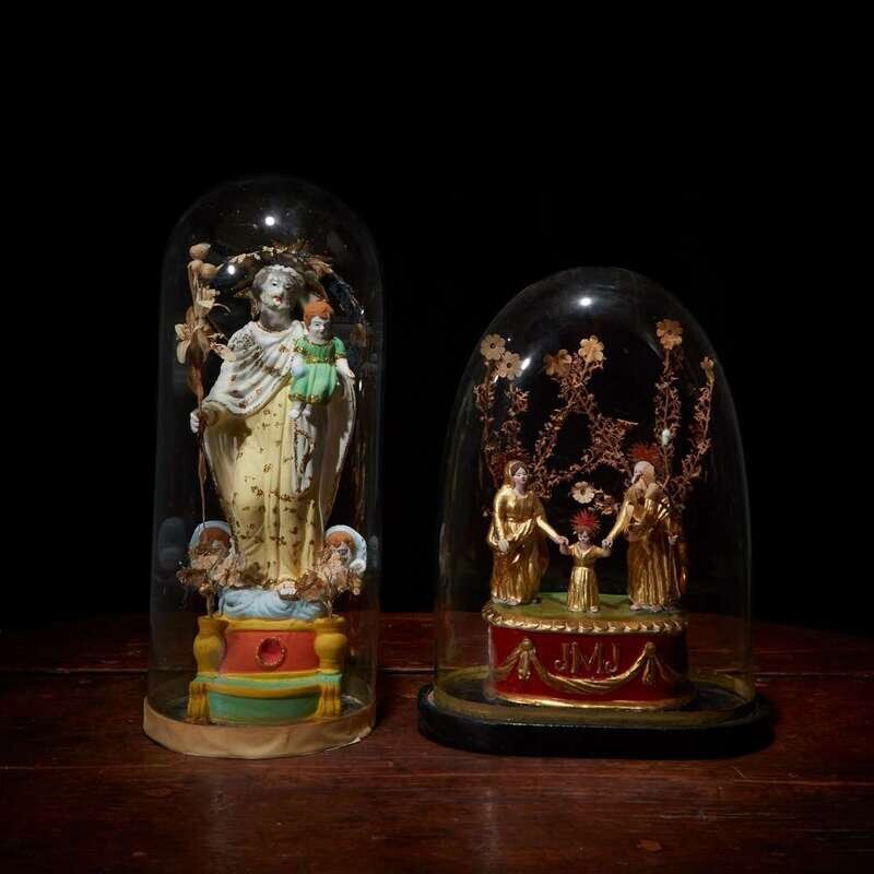 Two santibelli depicting the Holy Family and God the Father French or Italian, late19th century