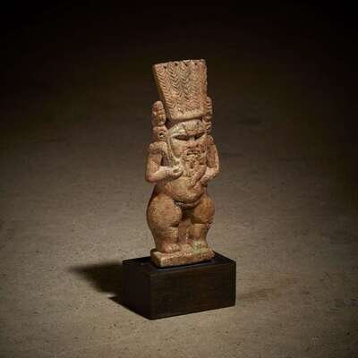 An Egyptian faience Bes figure Late Dynastic to Ptolemaic Period, circa 664 to 30 B.C.E.