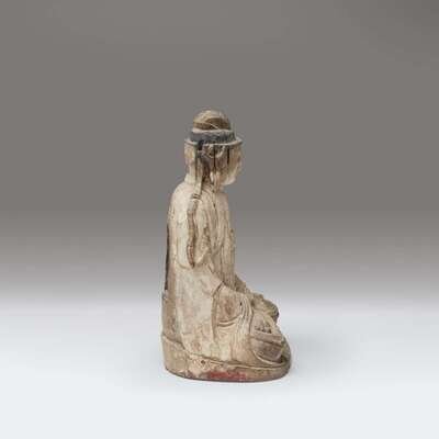 A small Chinese carved and painted wood figure of a seated bodhisattva Yuan/Ming dynasty