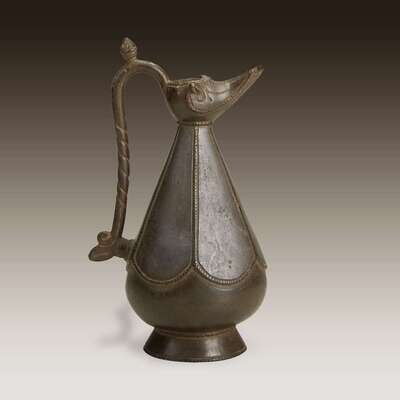 An Iranian bronze lamp in the shape of a ewer 12th century
