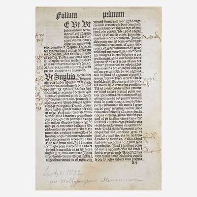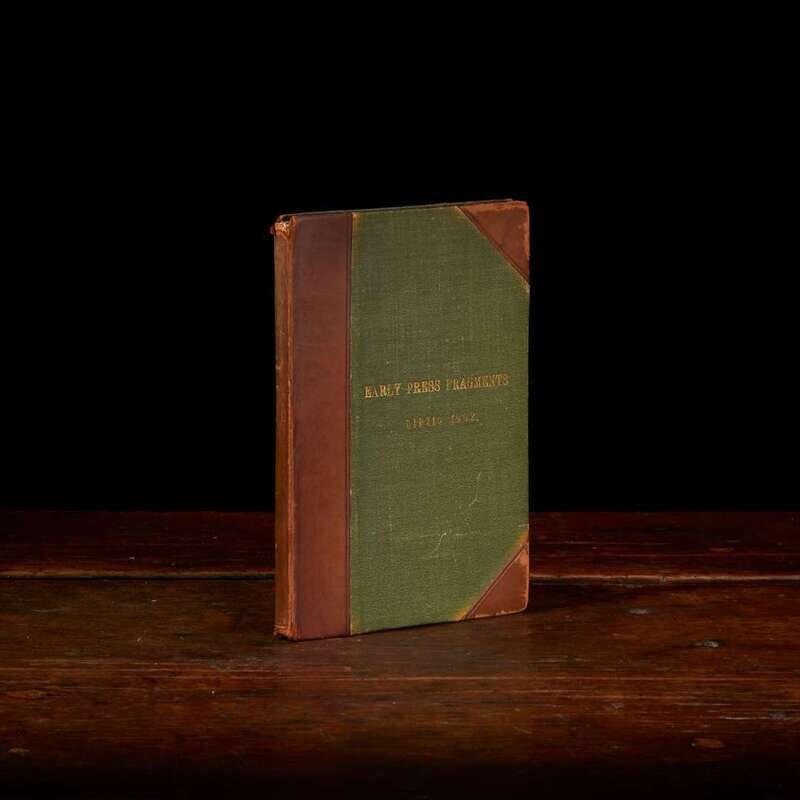 (Leipzig: Wolfgang Stöckel, ca. 1502). Small 4to. Fragment: 44 leaves. Collation: A2-B3, B5-C2, C5-D2, D5, F3-F5, G1-H6, I2-I5, L3-L5, *2-*5 (table). 42 lines, double column. Gothic type. Three-quarter tan calf, stamped in blind and in gilt, over green cloth-covered boards, joints and corners rubbed, spine ends chipped; earlier collator's notes on front endpapers; scattered marginalia and underlining; dampstaining at bottom corner of all leaves; scattered spotting. With the Theological Seminary Library, Gettysburg, Pa., book-plate, as well as donation book-plate of the Rev. Jeremiah Zimmerman, on front paste-down; same Seminary Library ink stamp on front free endpaper. OCLC 837220364. Wolfgang Stöckel (ca. 1473-1541) was a Leipzig-based printer who operated numerous printing presses across Central and Eastern Germany, including Wittenberg, Halle, Eilenburg, and Dresden. He briefly served as printer to George the Bearded, Duke of Saxony. Fragment from Georg Morgenstern's only known published work "Sermones contra omnem mundi perversum statum" (Sermons Against the Whole Perverse State of the World). Little is known about Morgenstern, except that he was a doctor of canon law and taught at the Univeristy of Leipzig.