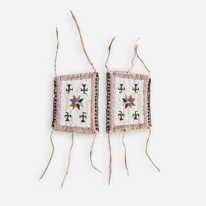 A pair of Plains beaded hide pictorial wrist bands Late 19th/early 20th century