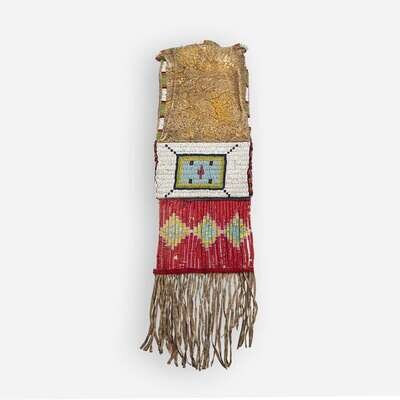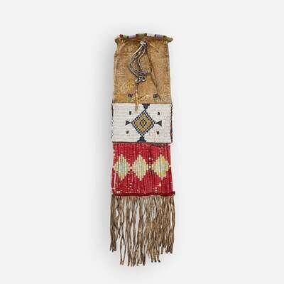 A Central Plains beaded and quilled hide pipe bag Late 19th century