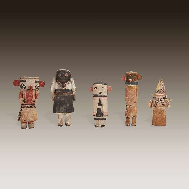 Five Hopi carved and painted cottonwood root Katsina Dolls Early 20th century
