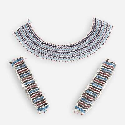 A Zulu beadwork necklace and two beadwork bracelets Late 19th century