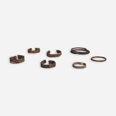 Comprising six bracelets, a necklace, and a flywhisk, all collected by Gunner R. Dickens of the Natal Naval Volunteers during the Boer War. (8).