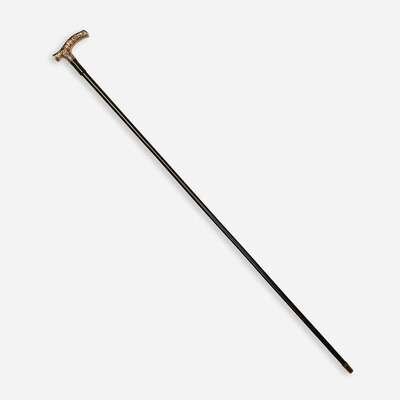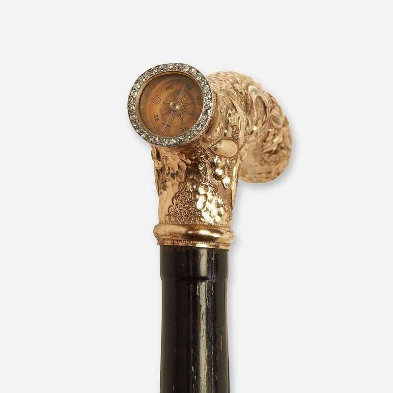 A fine 10-karat Victorian diamond-set gold and ebonized wood compass cane Dated 1891