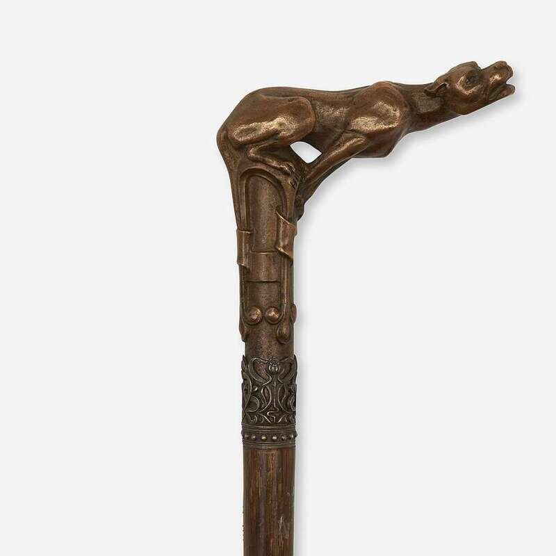 The handle a hound-form bronze after Hugo Kirsch (Austrian, 1873-1961), signed in cast "Hugo. K."