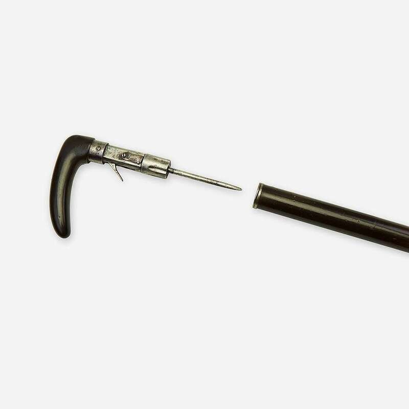 A steel and mahogany Pepperbox-stiletto cane Probably French, late 19th century