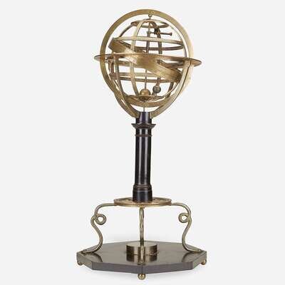 A Victorian brass and ebonized wood armillary sphere 19th century