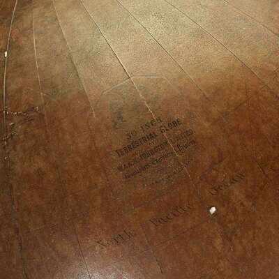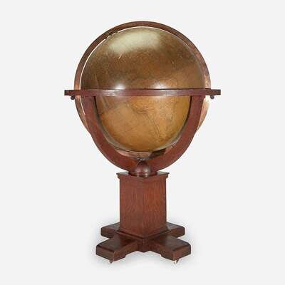 With cartouche inscribed "30 INCH/TERRESTRIAL GLOBE/BY/W. & A. K. JOHNSTON, LIMITED./Cartographers, Engravers & Printers/EDINBURGH & LONDON" surmounted by Royal coat of arms.
