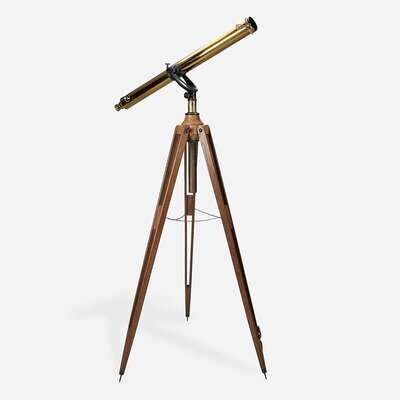 A large brass and iron telescope on oak tripod stand First half 20th century