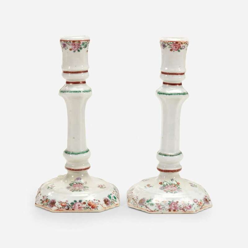 A pair of Chinese export porcelain famille rose candlesticks 18th/19th century