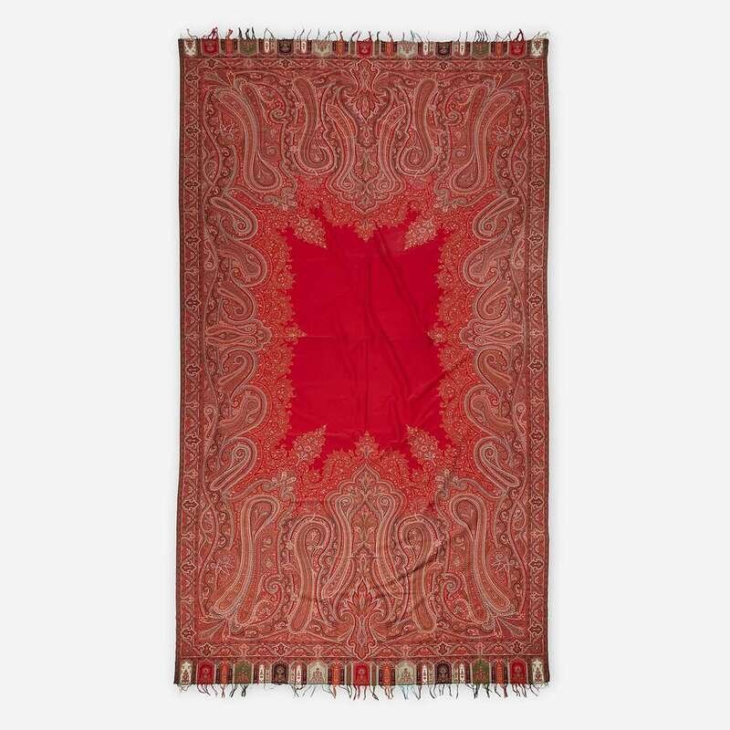 Machine woven in imitation of the Kashmir style, with basted linen tape label numbered "6-1227" and hand inscribed "831."