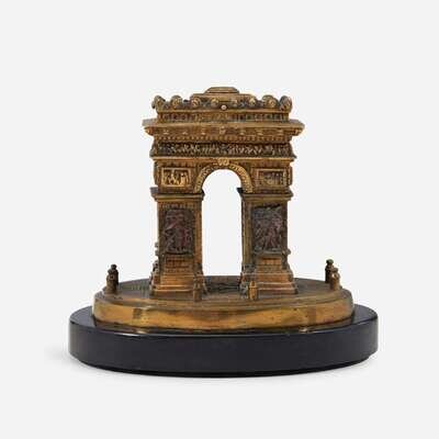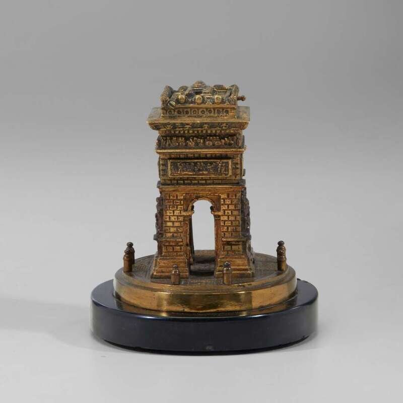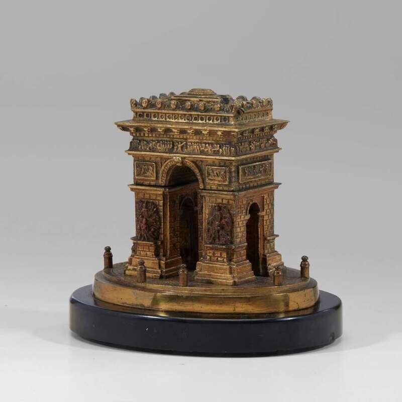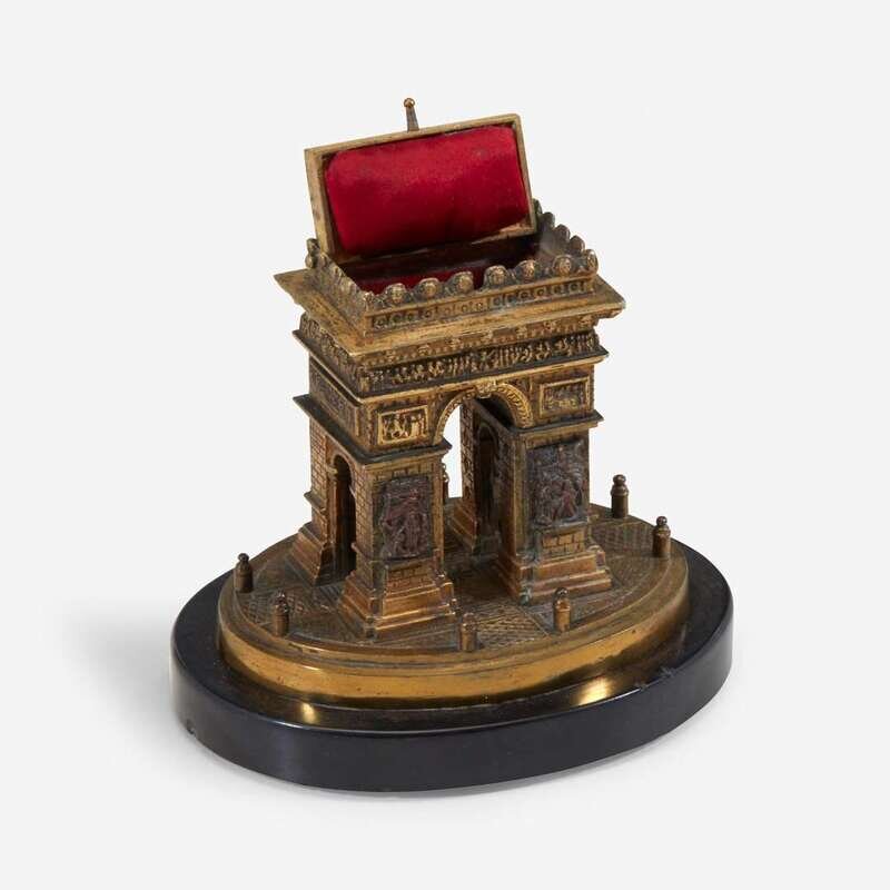 A French Grand Tour copper-mounted gilt-bronze trinket box in the form of the Arc de Triomphe, Paris Possibly Frères LeBlanc, Paris, circa 1870s