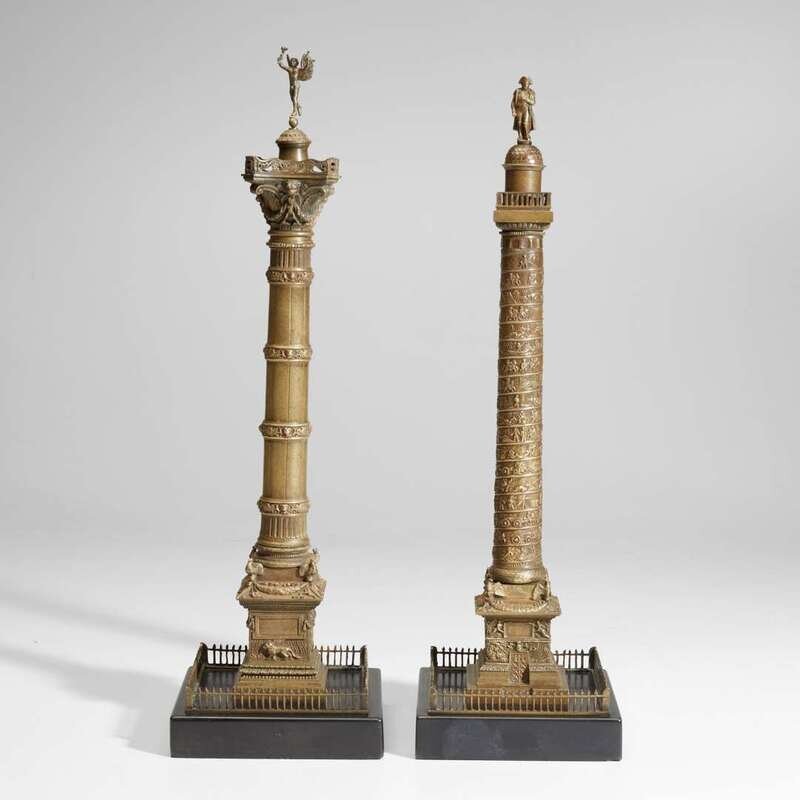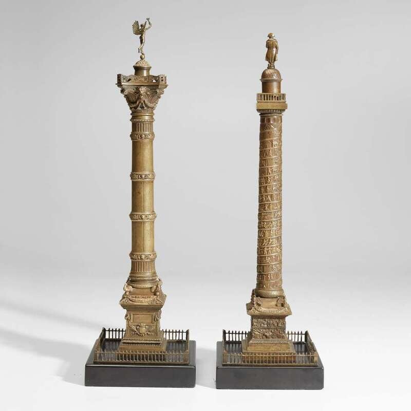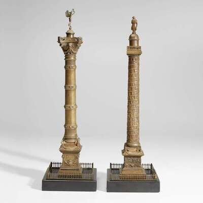 Two French Grand Tour patinated bronze models of the Colonnes Vendôme and Juillet Frères LeBlanc, Paris, circa 1860