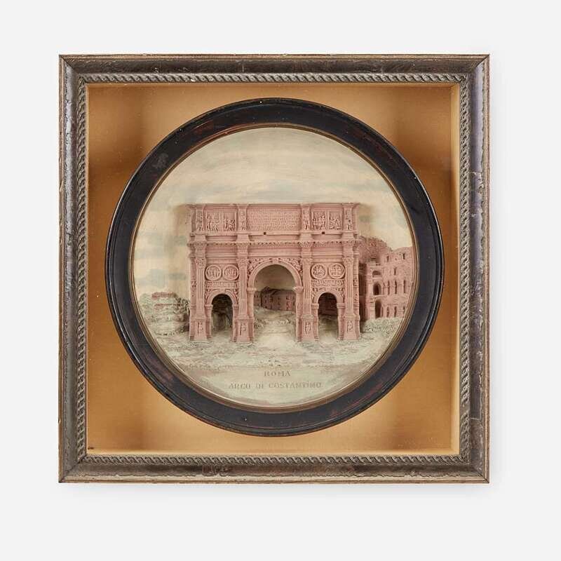 A framed Grand Tour polychrome terracotta plaque of the Arch of Constantine Johann Maresch, Germany, 19th century