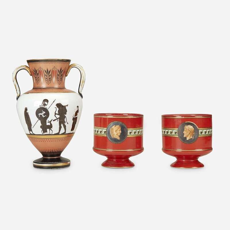 A group of English Neo-Grec style vases Possibly Pratt or Hill Pottery Co., mid 19th century