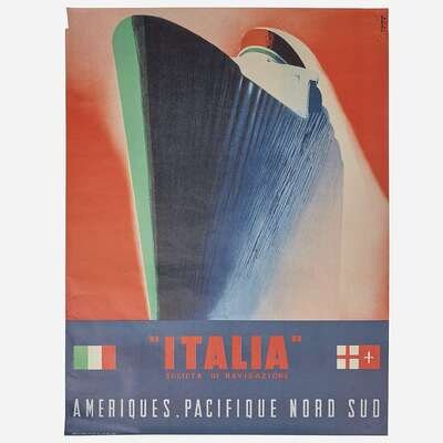 [Posters] [Italy] Patrone, G(iovanni). "Italia" societa di navigazione Ameriques, Pacifique Nord Sud