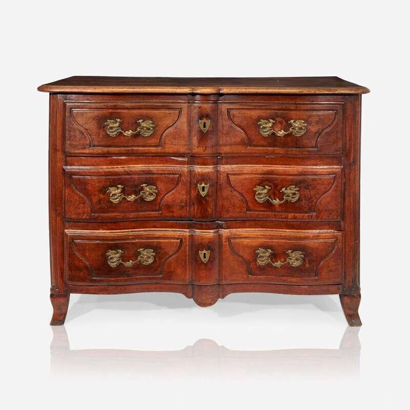 A Régence walnut commode with unusual bird-form ormolu mounts Second quarter 18th century