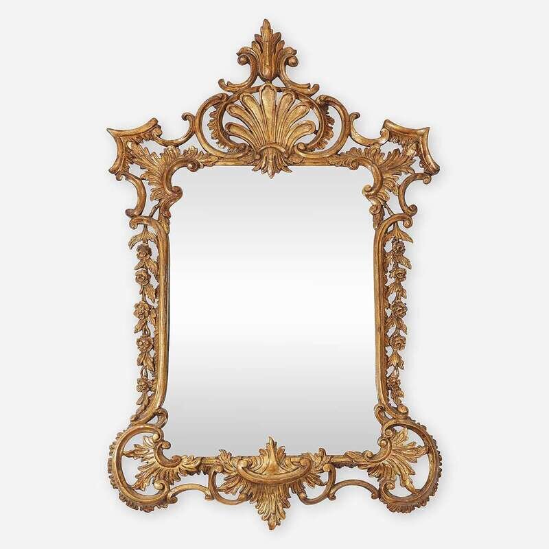 A Continental Rococo carved pine giltwood mirror Probably German, 18th century