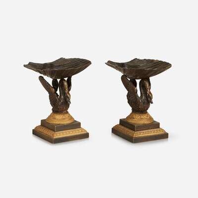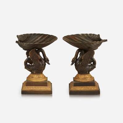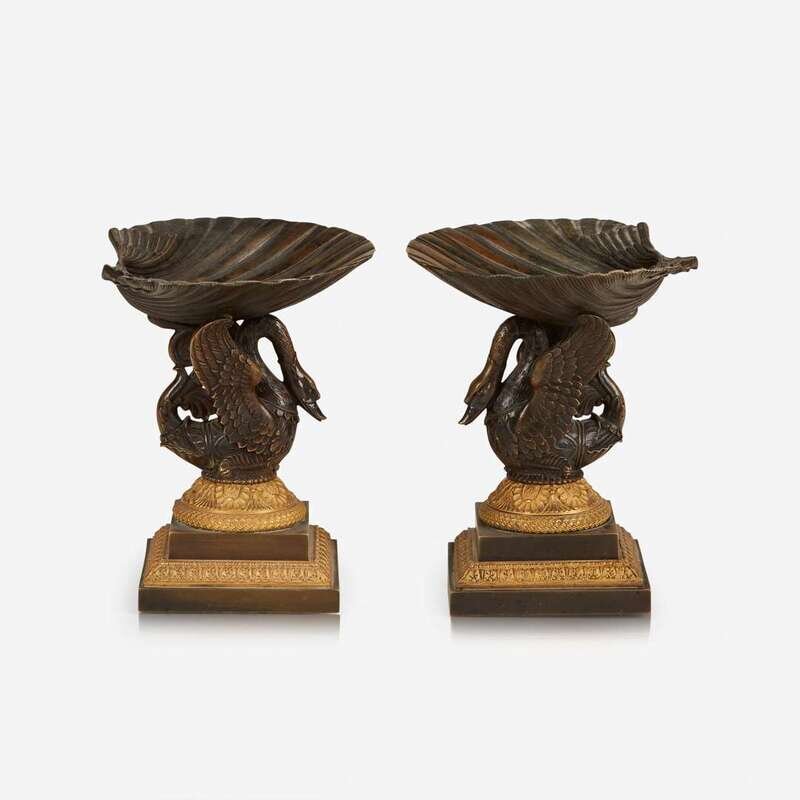 A pair of Charles X gilt and patinated bronze swan-form vide-poches First quarter 19th century