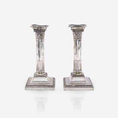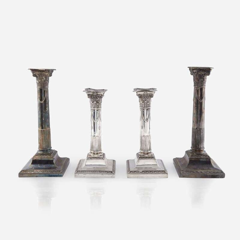 Sold together with a pair of silver-plated candlesticks of conforming design. (4).