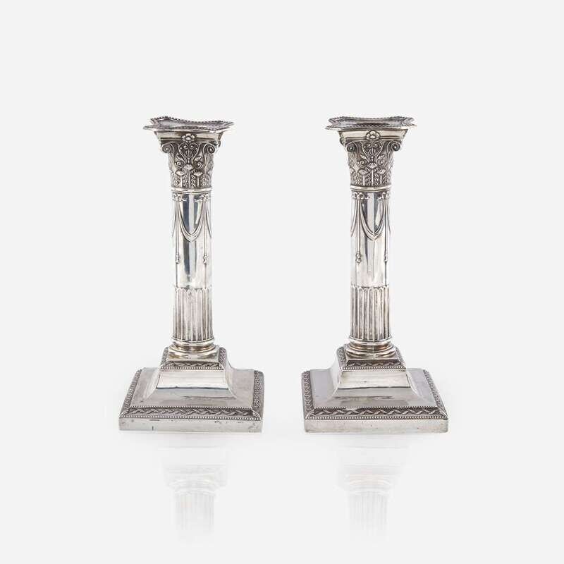 A pair of Edward VII weighted sterling silver candlesticks David David & Maurice David, Sheffield, 1901