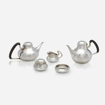 A Mexican sterling silver modernist five-piece tea service Geeves, Mexico, 20th century