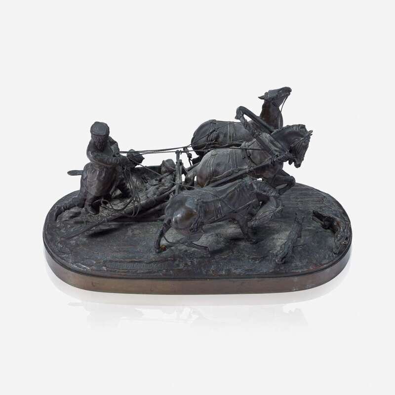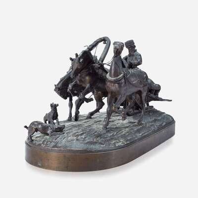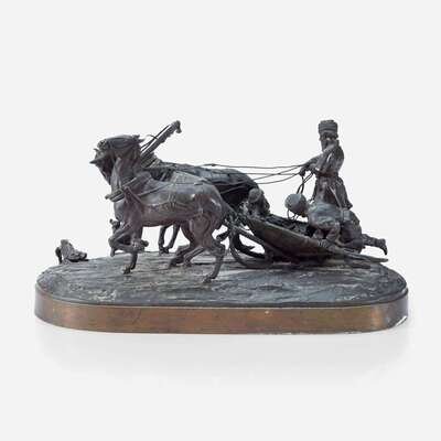 After Evgeni Alexandrovich Lanceray (Russian, 1848-1886) Russian Troika Departing, modeled 1873