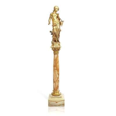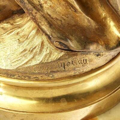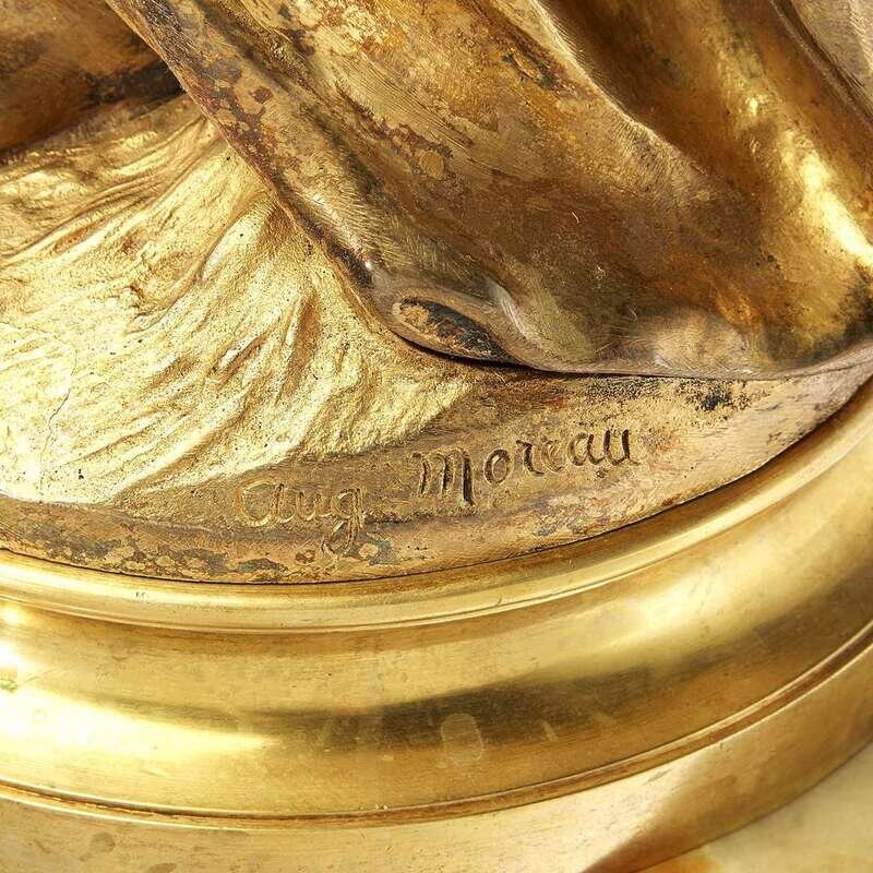 Bronze, gold patina, signed in cast "Aug. Moreau;" sold together with gilt-metal mounted onyx pedestal. (2).