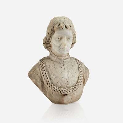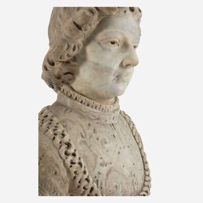 A carved alabaster portrait bust of Lorenzo de Medici as a boy 19th century